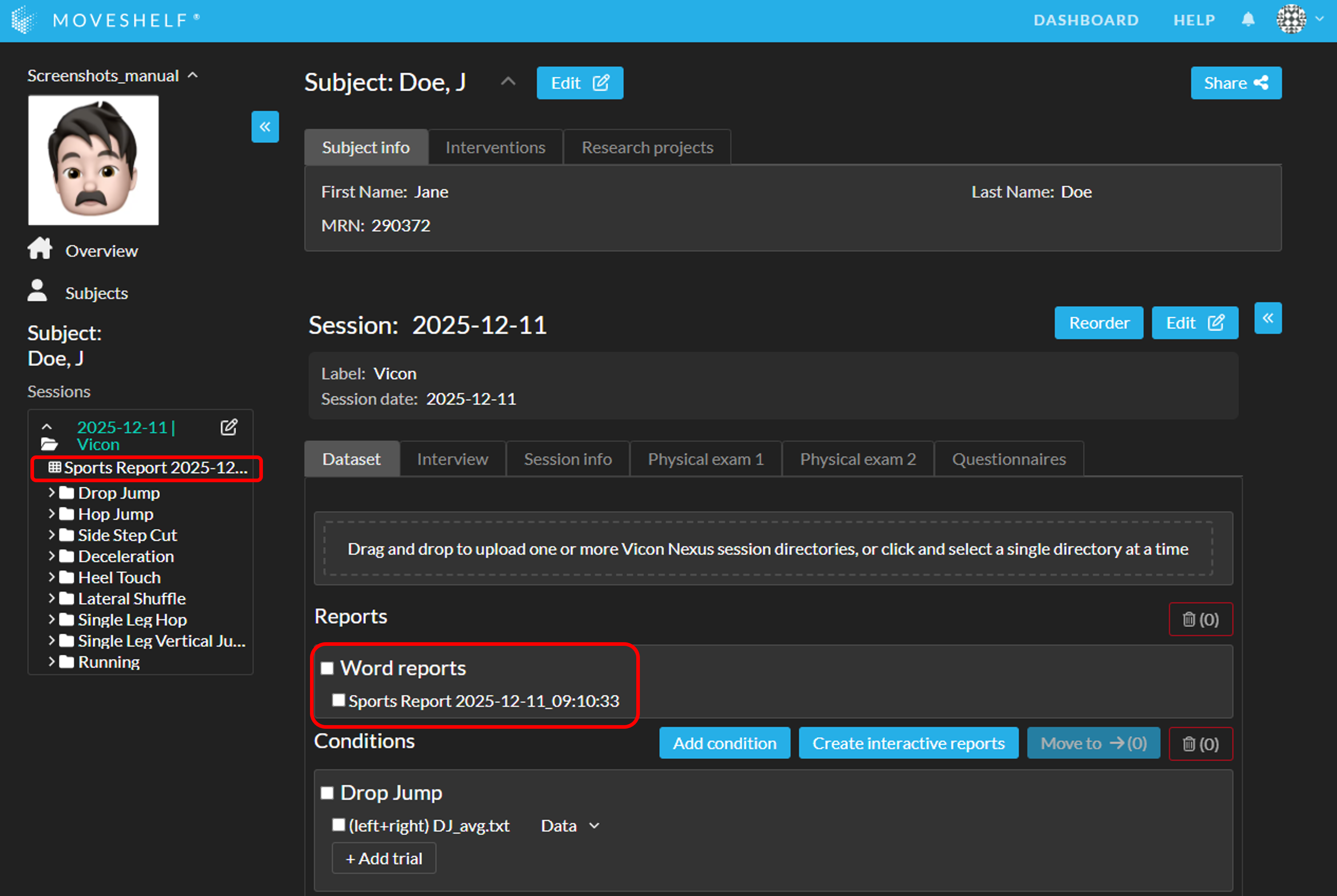 You can add subject information to Moveshelf. Subject information includes general subject information (such as date of birth or diagnosis), interventions received, and research projects.