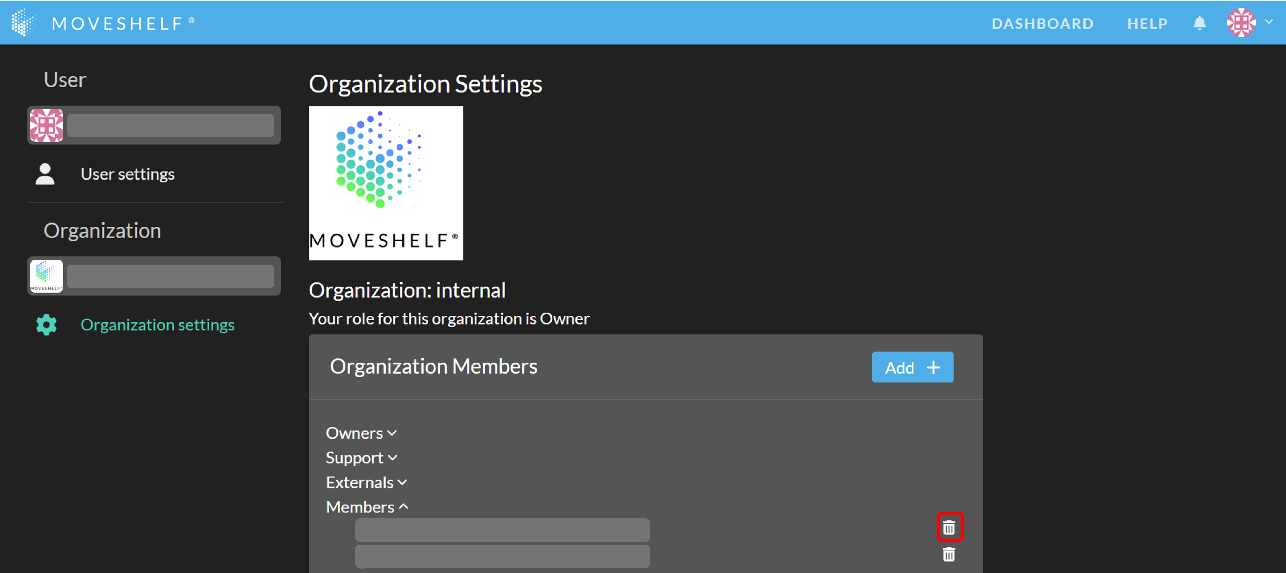 - Click on the recycle bin next to the user to remove the user from the project.