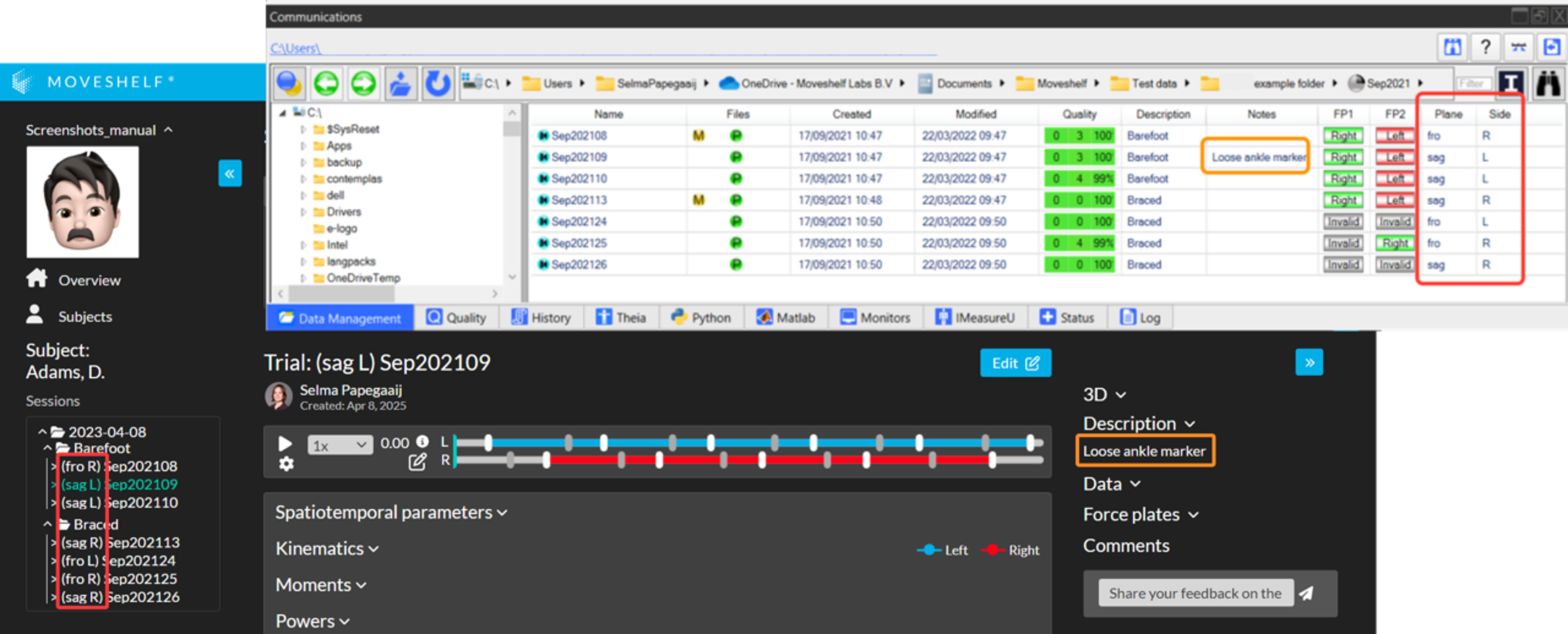 - Upload the data to Moveshelf.