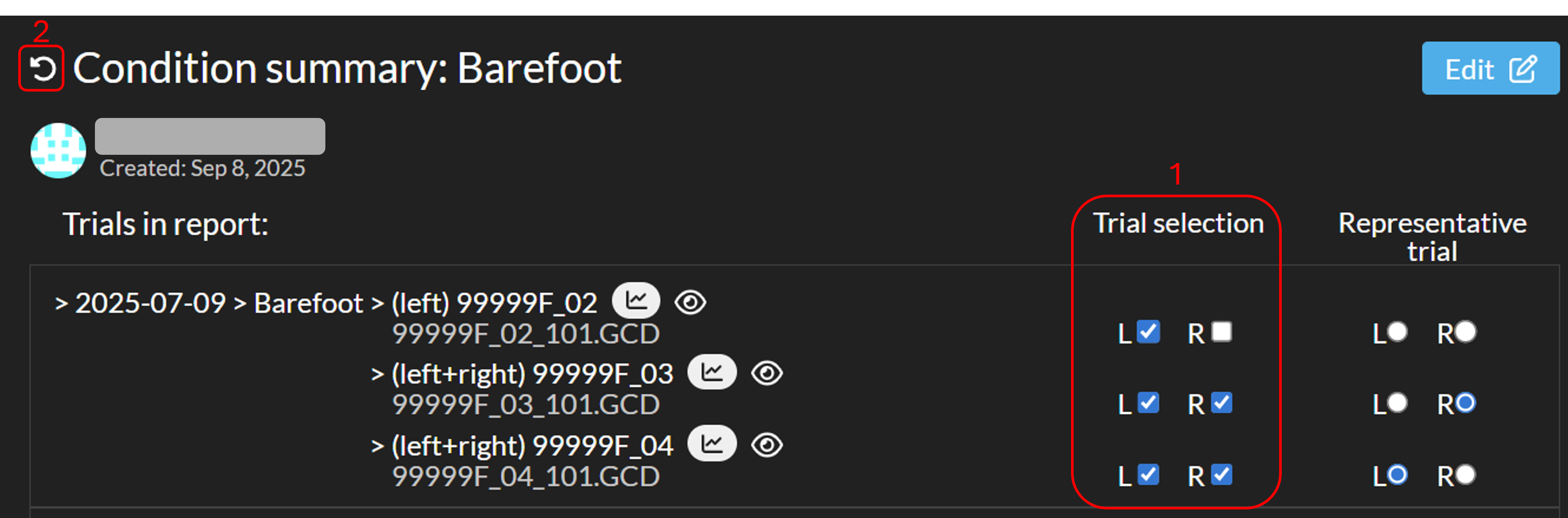 The edits will be saved automatically, applied to all corresponding reports, and included in the biomechanical evaluation or gait analysis report once you run the corresponding processor.